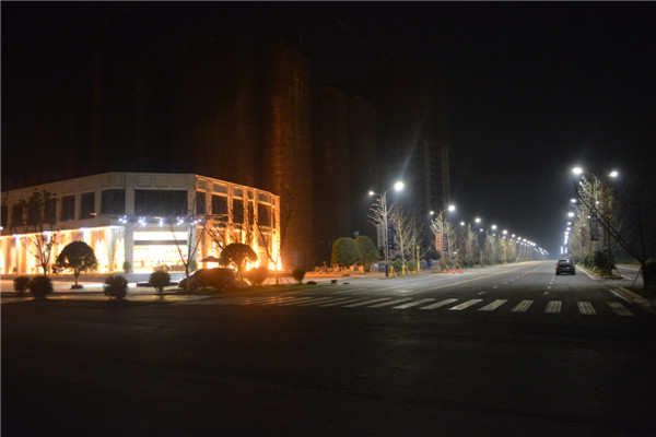 夜间的全州新城又予人另一种不同的风味。黑夜中的两排路灯,与展示中心相 互