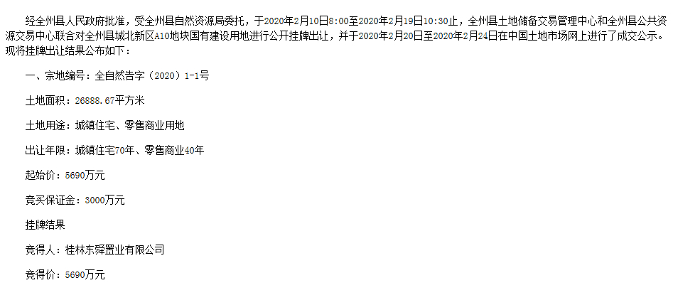 喜报!东舜集团成功摘牌全州县城北新区A10地块